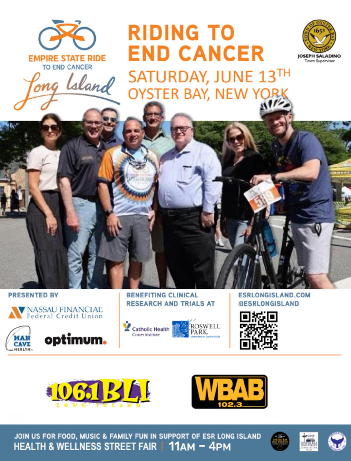 Join 102.3 WBAB for a beautiful day of cycling and a post ride Street Fair in support of cancer research at the 6th annual Empire State Ride Long Island on June 13, 2026!