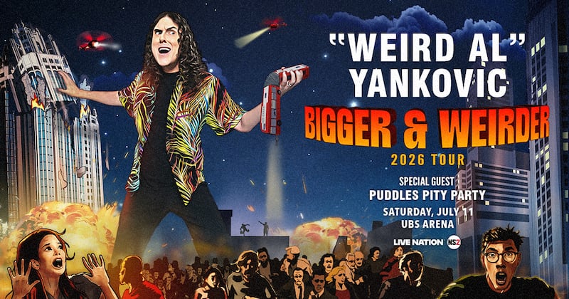Weird Al Yankovic is bringing the Bigger & Weirder 2026 Tour to UBS Arena on July 11th, with special guest Puddles Pity Party, and 102.3 WBAB wants to hook you up with a pair of tickets to the show!