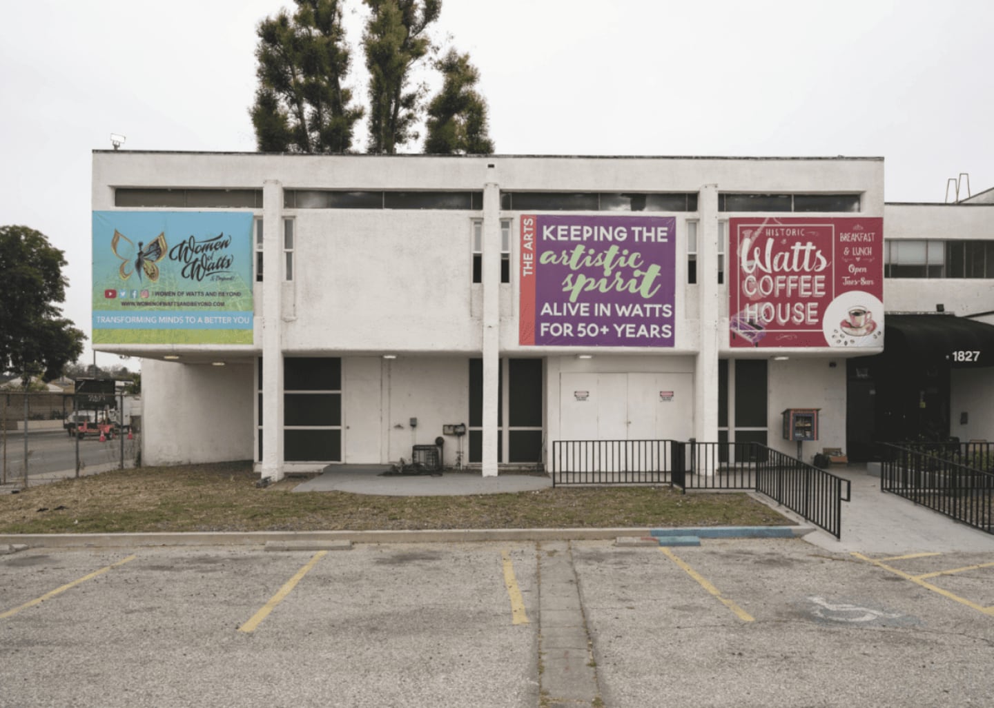 Restrained in its design, the Watts Happening Cultural Center has served as a gathering spot for Black artists, musicians, and other creatives who helped reinvigorate the community after the Watts Uprising in 1965. Simple white walls and a structure supported by pillars echo the minimalist tenets of modernism, while a courtyard serves as a dining area and community space for the Watts Coffee House, making the most of the region's generally warm climate.