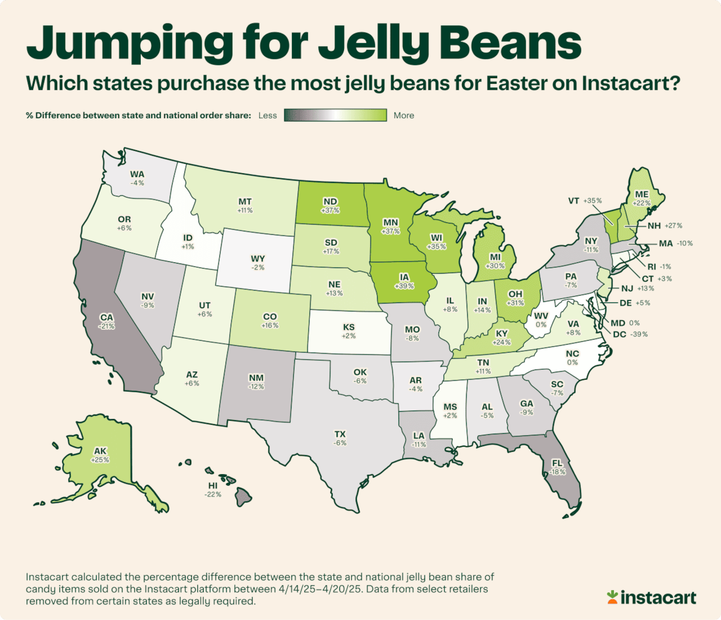 Jelly beans surged nationally during Easter week, up 863% above their yearly average, but some states embraced them even more enthusiastically.