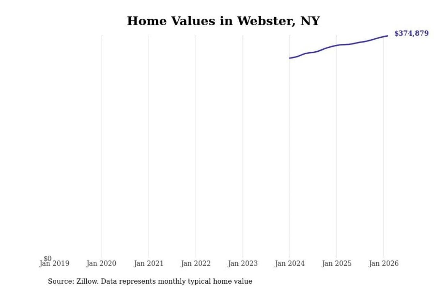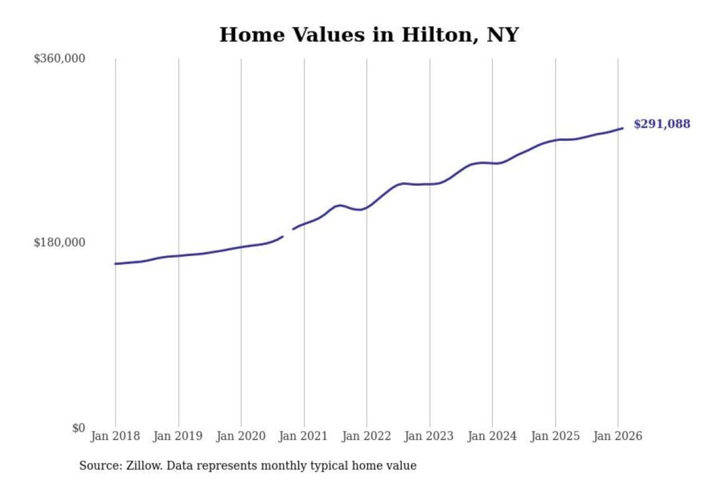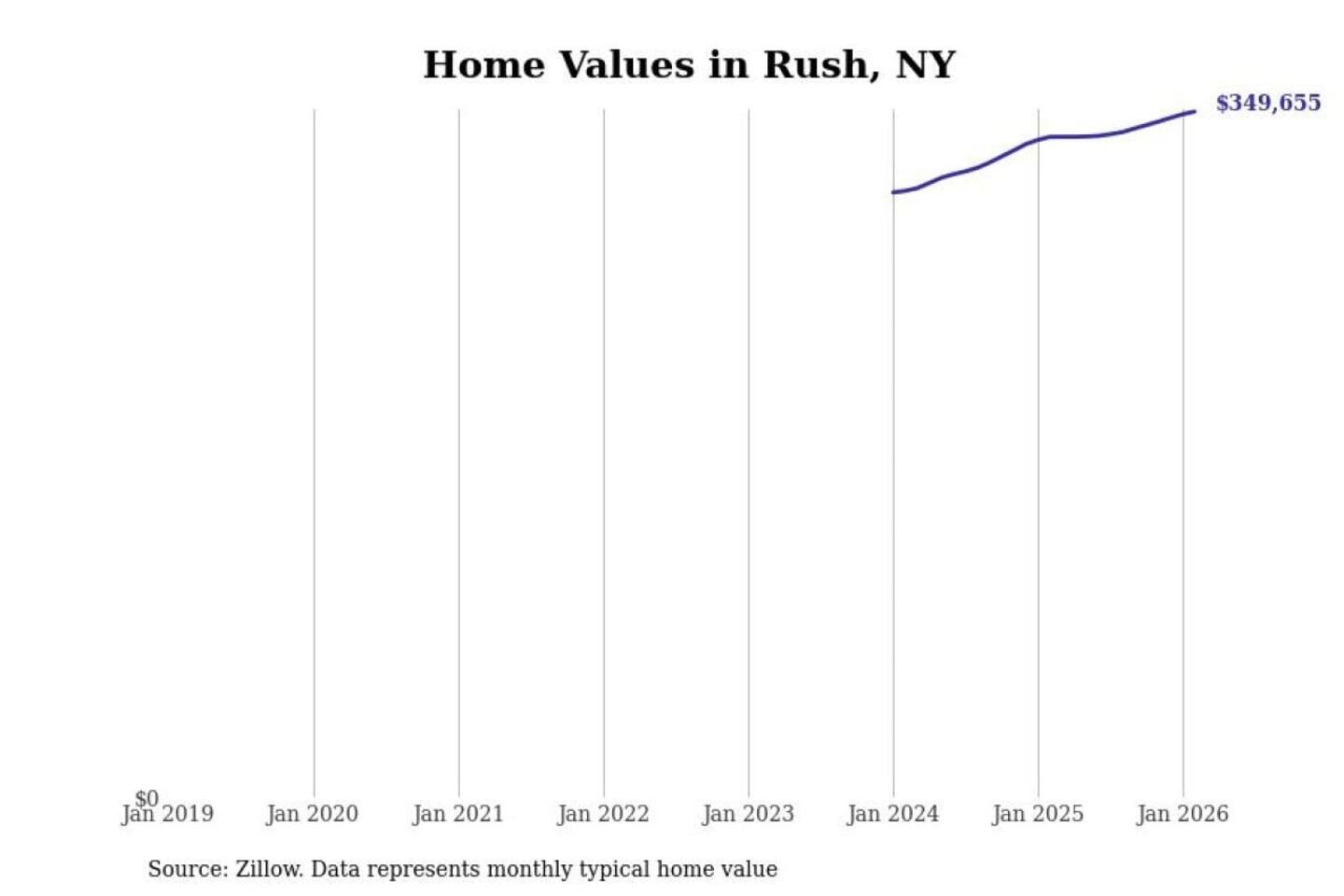 Stacker compiled a list of cities with the most expensive homes in the Rochester, NY metro area using data from Zillow. Charts show the monthly typical home value since January 2018.