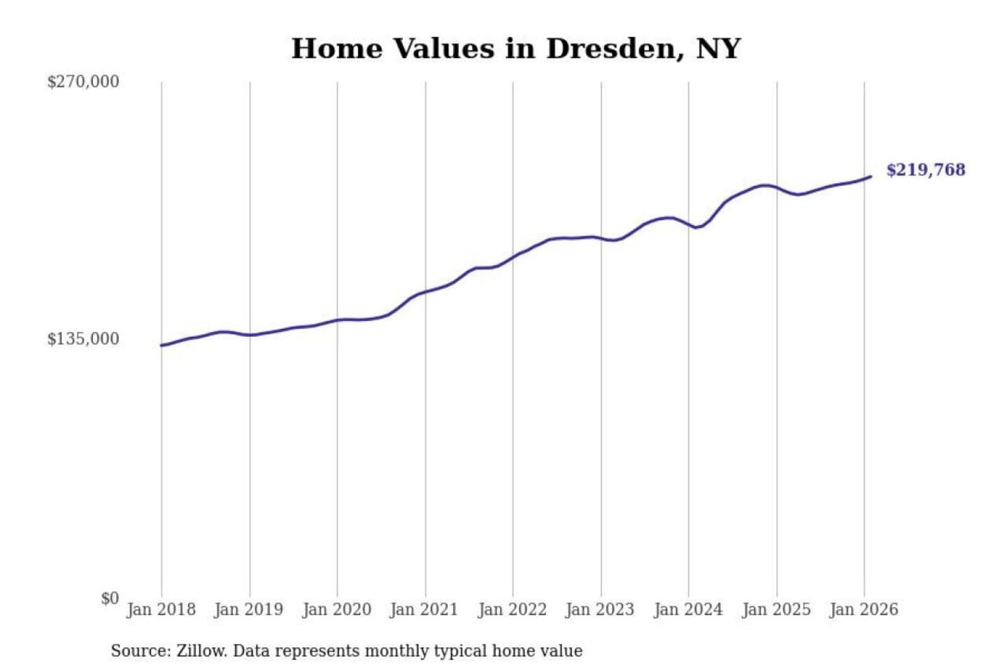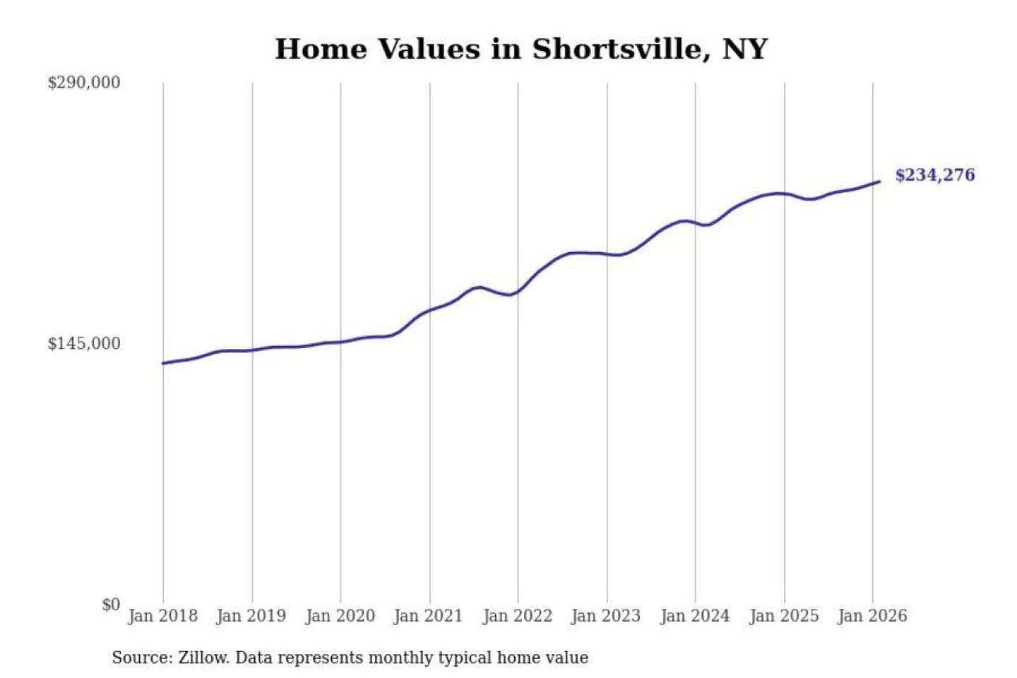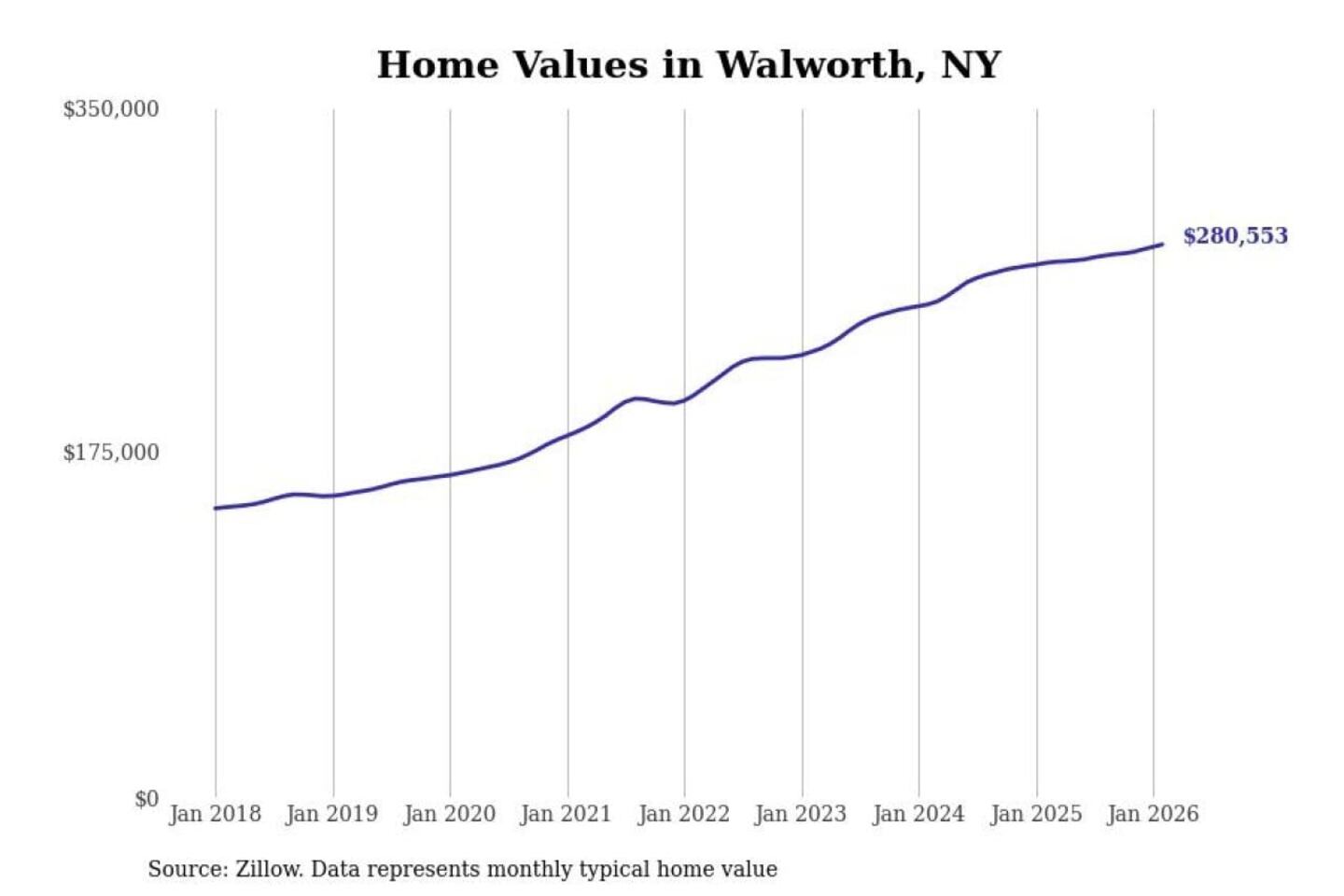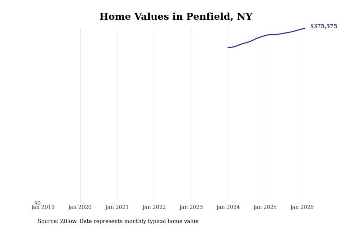 Stacker compiled a list of cities with the most expensive homes in the Rochester, NY metro area using data from Zillow. Charts show the monthly typical home value since January 2018.