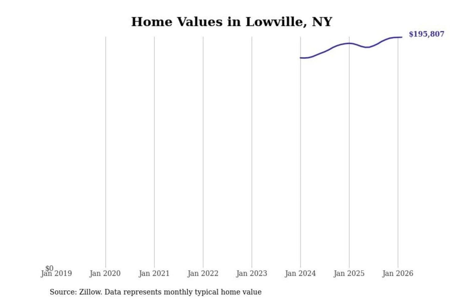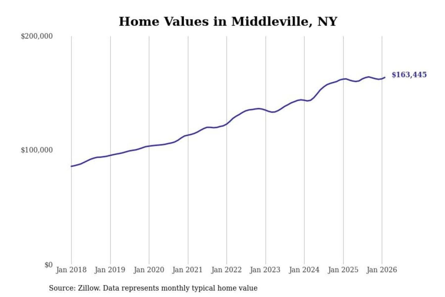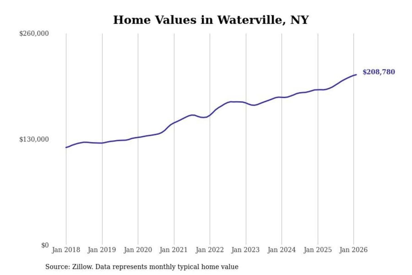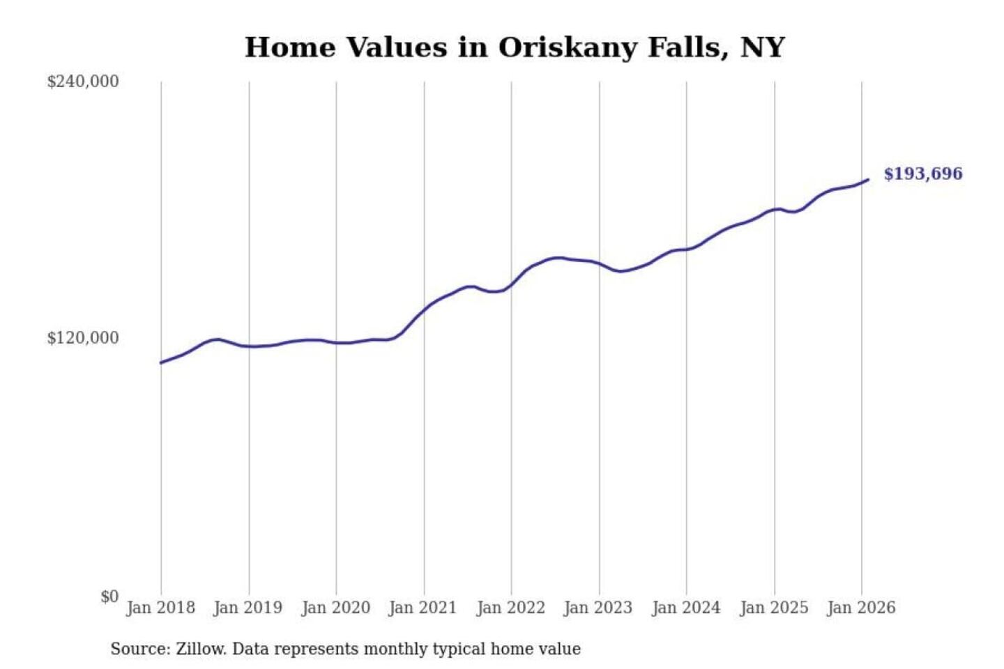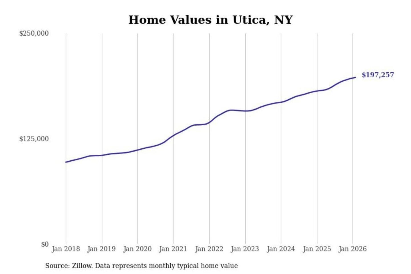 Stacker compiled a list of cities with the most expensive homes in the Utica-Rome, NY metro area using data from Zillow. Charts show the monthly typical home value since January 2018.