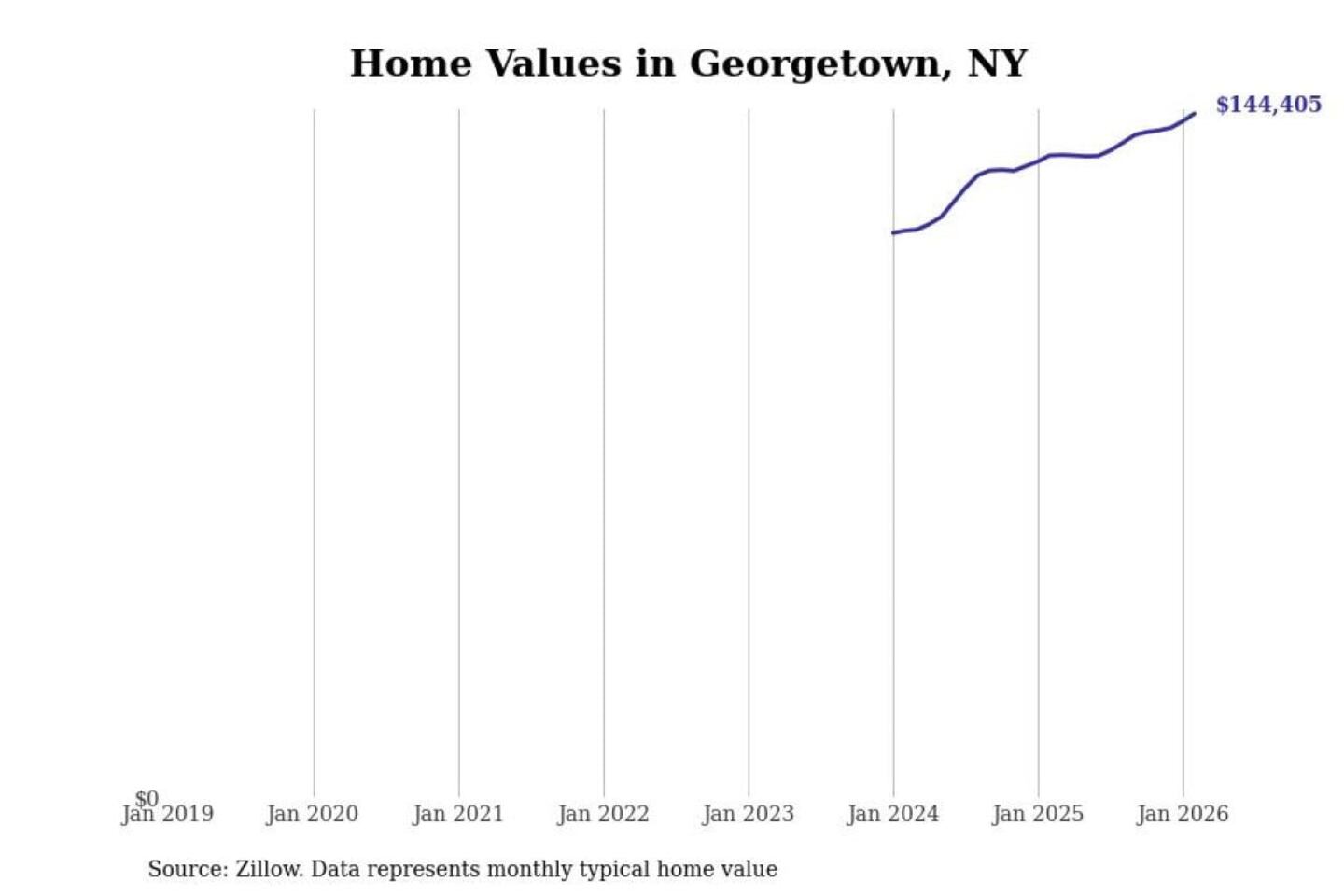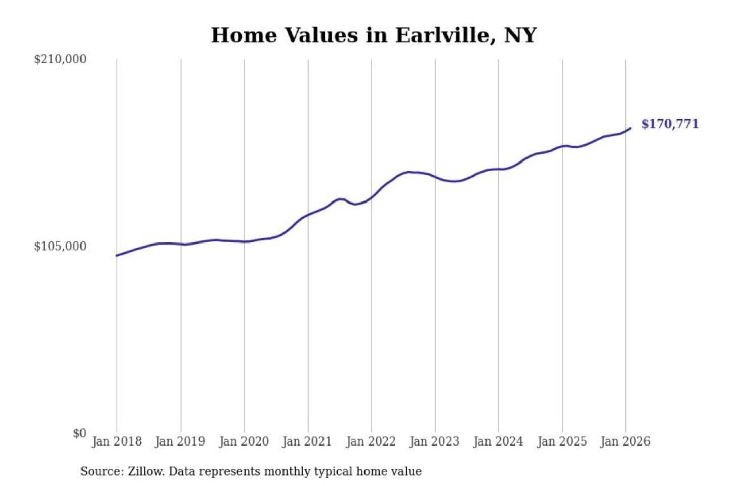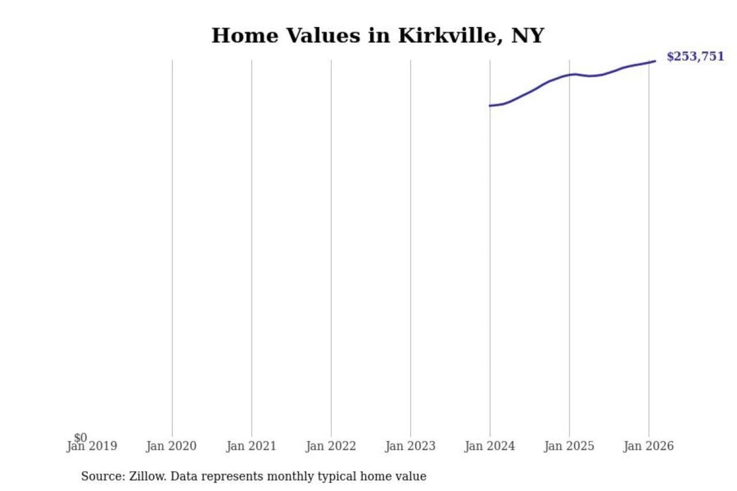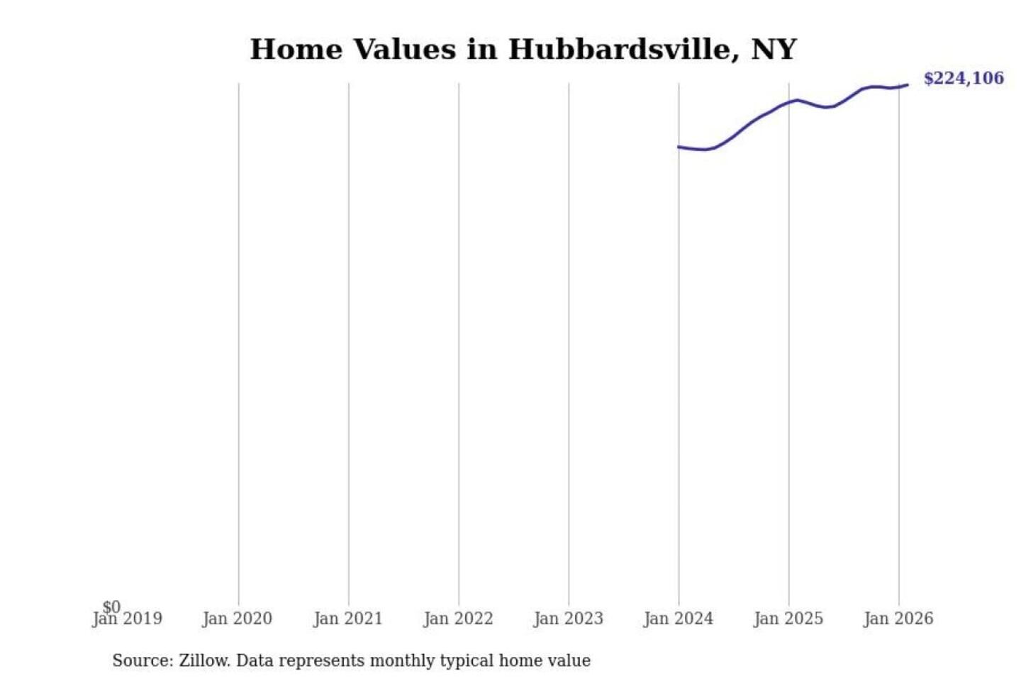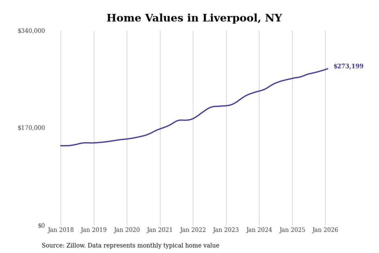 Stacker compiled a list of cities with the most expensive homes in the Syracuse, NY metro area using data from Zillow. Charts show the monthly typical home value since January 2018.