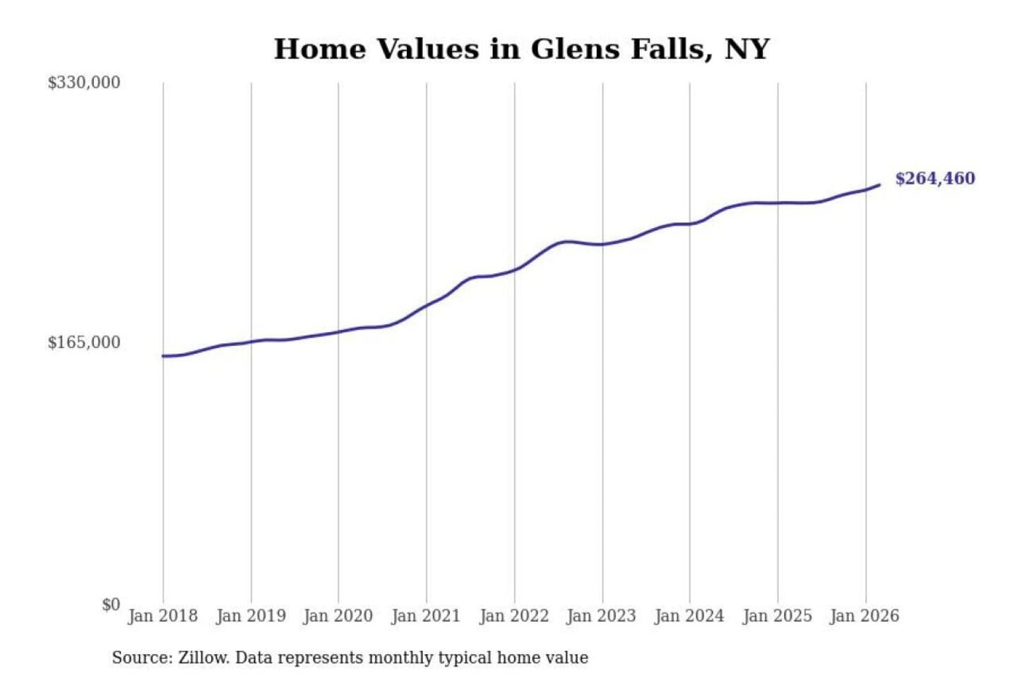Stacker compiled a list of cities with the most expensive homes in the Glens Falls, NY metro area using data from Zillow. Charts show the monthly typical home value since January 2018.