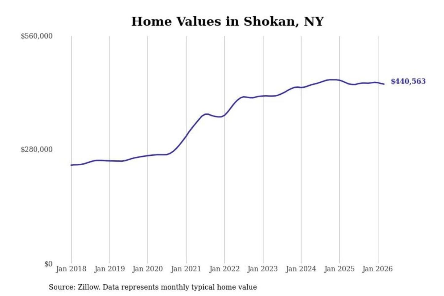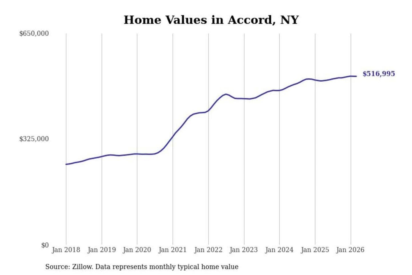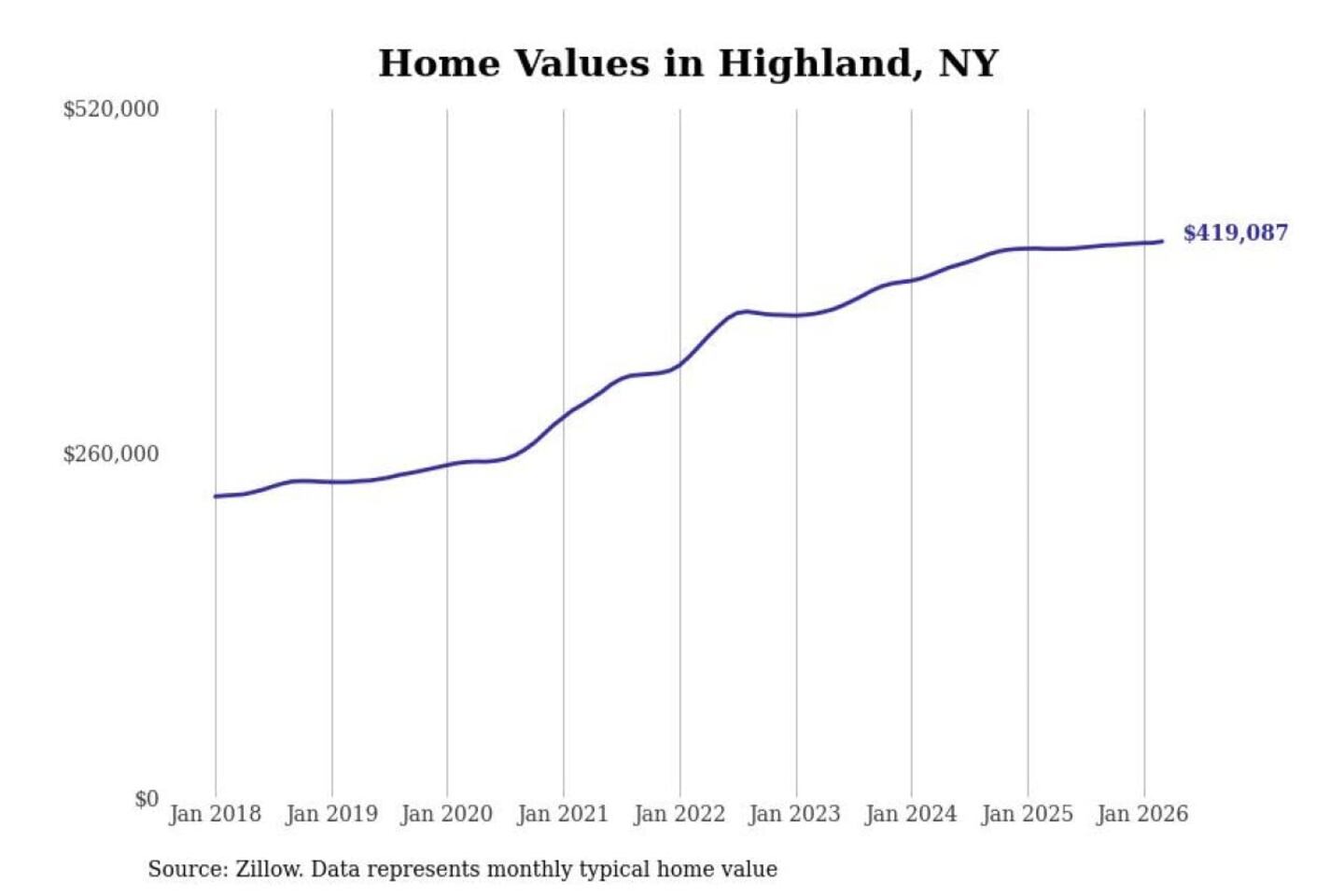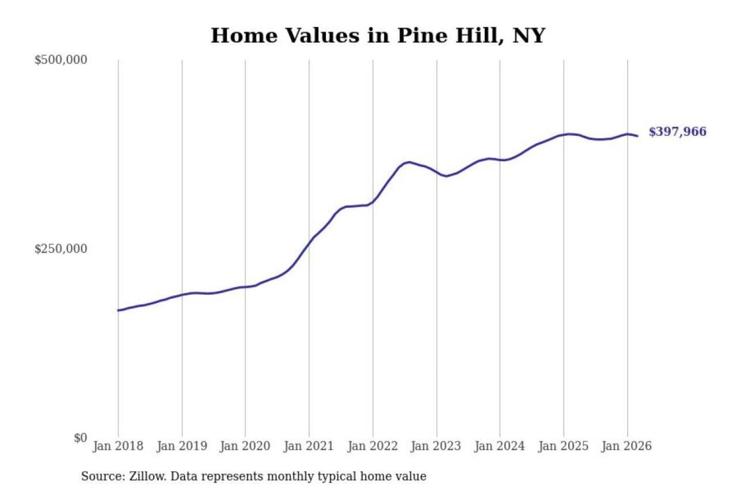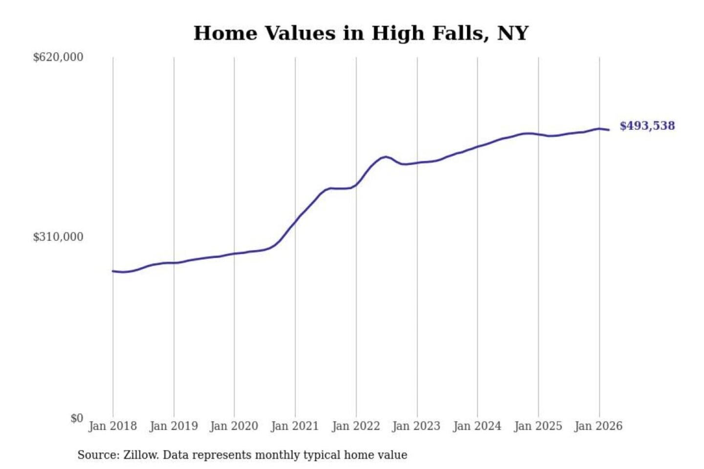 Stacker compiled a list of cities with the most expensive homes in the Kingston, NY metro area using data from Zillow. Charts show the monthly typical home value since January 2018.