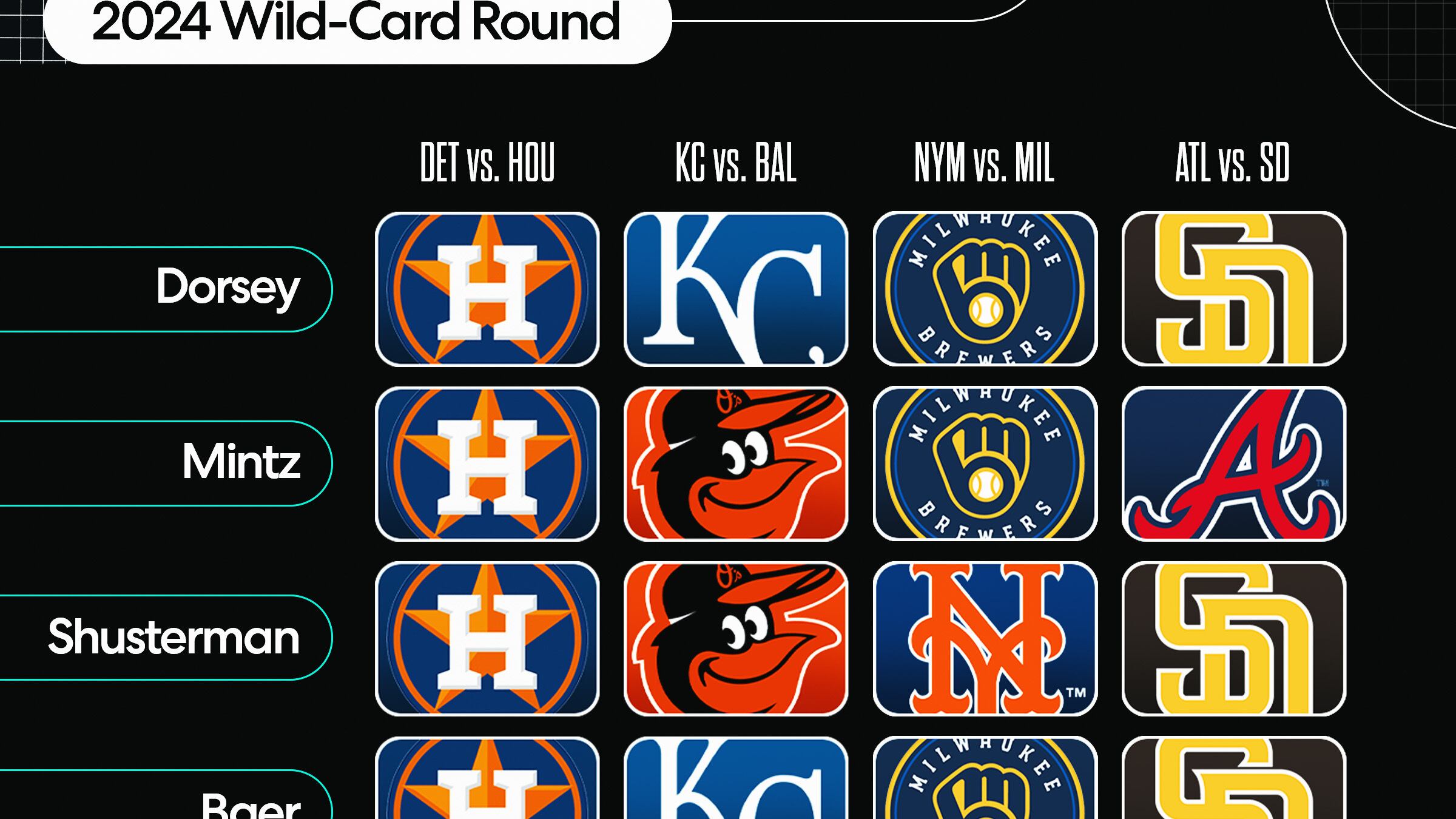 Below are Yahoo Sports' postseason picks from baseball writers Russell Dorsey, Jake Mintz, Jordan Shusterman, Jack Baer, Jason Owens and Liz Roscher. How many did they get right? We'll soon find out.
