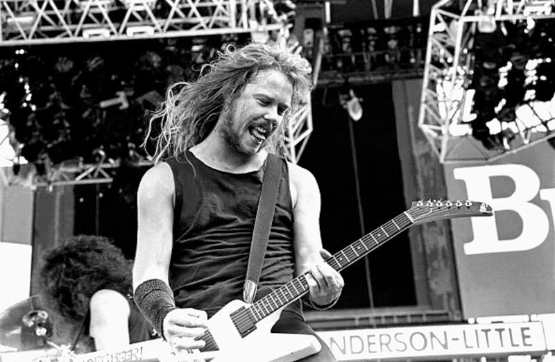James Hetfield Metallica in concert at the NEC Arena, Birmingham. James Hetfield, lead singer and guitarist with the band, 4th November 1992. (Photo by Steve Murphy/Mirrorpix/Getty Images) (Mirrorpix/Getty Images)