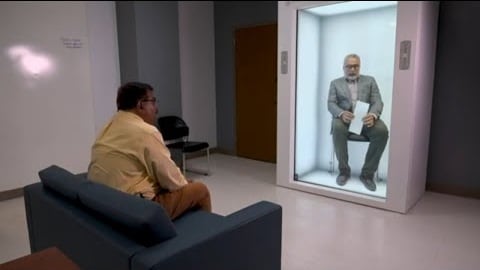 A hospital in Texas installed its first “Holobox,” a 3D, life-sized, holographic display that allows doctors to teleport to the hospital for real-time consultations. (From YouTube API)
