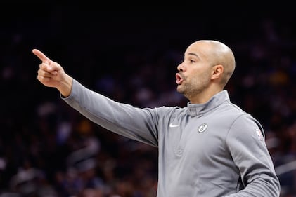 Brooklyn Nets v Golden State Warriors SAN FRANCISCO, CALIFORNIA - MARCH 25: Head coach Jordi Fernandez of the Brooklyn Nets gestures from the sideline during the first half at Chase Center on March 25, 2026 in San Francisco, California. NOTE TO USER: User expressly acknowledges and agrees that, by downloading and or using this photograph, User is consenting to the terms and conditions of the Getty Images License Agreement. (Photo by Kelley L Cox/Getty Images) (Kelley L Cox/Getty Images)