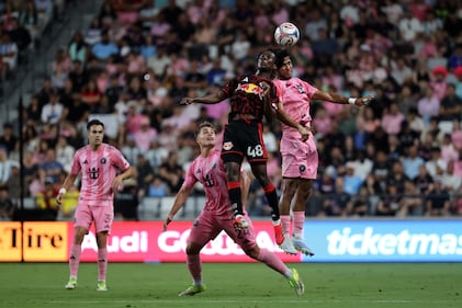 Inter Miami CF v New York Red Bulls MIAMI, FLORIDA - APRIL 11: Ronald Donkor #48 of New York Red Bulls jumps for the ball with Telasco Segovia #8 of Inter Miami CF during the MLS match between Inter Miami CF and New York Red Bulls at Nu Stadium on April 11, 2026 in Miami, Florida. (Photo by Leonardo Fernandez/Getty Images) (Leonardo Fernandez/Getty Images)