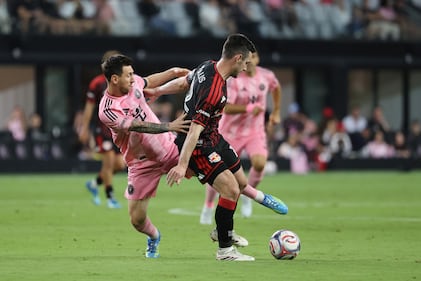 Inter Miami CF v New York Red Bulls MIAMI, FLORIDA - APRIL 11: Lionel Messi #10 of Inter Miami CF is challenged by Julian Hall #16 of New York Red Bulls during the MLS match between Inter Miami CF and New York Red Bulls at Nu Stadium on April 11, 2026 in Miami, Florida. (Photo by Leonardo Fernandez/Getty Images) (Leonardo Fernandez/Getty Images)