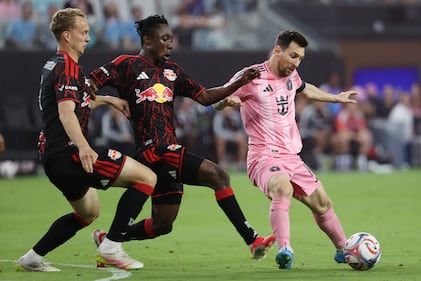 Inter Miami CF v New York Red Bulls MIAMI, FLORIDA - APRIL 11: Lionel Messi #10 of Inter Miami CF challenges for the ball with Dylan Nealis #12 and Ethan Horvath #34 of New York Red Bulls during the MLS match between Inter Miami CF and New York Red Bulls at Nu Stadium on April 11, 2026 in Miami, Florida. (Photo by Leonardo Fernandez/Getty Images) (Leonardo Fernandez/Getty Images)