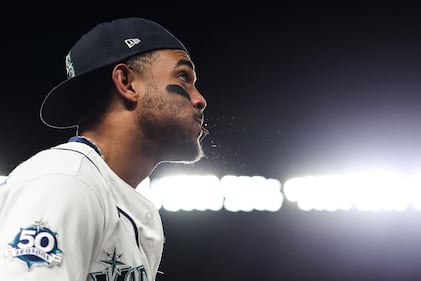 New York Yankees v Seattle Mariners SEATTLE, WASHINGTON - MARCH 30: Julio Rodríguez #44 of the Seattle Mariners spits seeds as he takes the field during the seventh inning against the New York Yankees at T-Mobile Park on March 30, 2026 in Seattle, Washington. (Photo by Steph Chambers/Getty Images) (Steph Chambers/Getty Images)